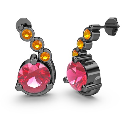 Pembe kuvars ve sitrin 925 ayar siyah rodyum kaplama gümüş küpe