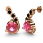 Pembe kuvars ve siyah zirkon 14 ayar rose altın küpe