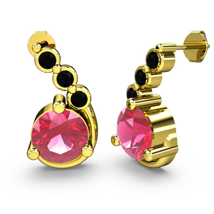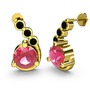 Pembe kuvars ve siyah zirkon 8 ayar altın küpe