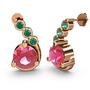 Pembe kuvars ve yeşil kuvars 18 ayar rose altın küpe