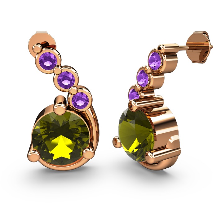 Peridot ve ametist 18 ayar rose altın küpe