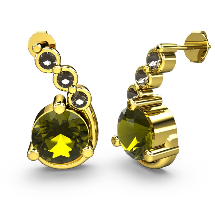 Peridot ve dumanlı kuvars 14 ayar altın küpe