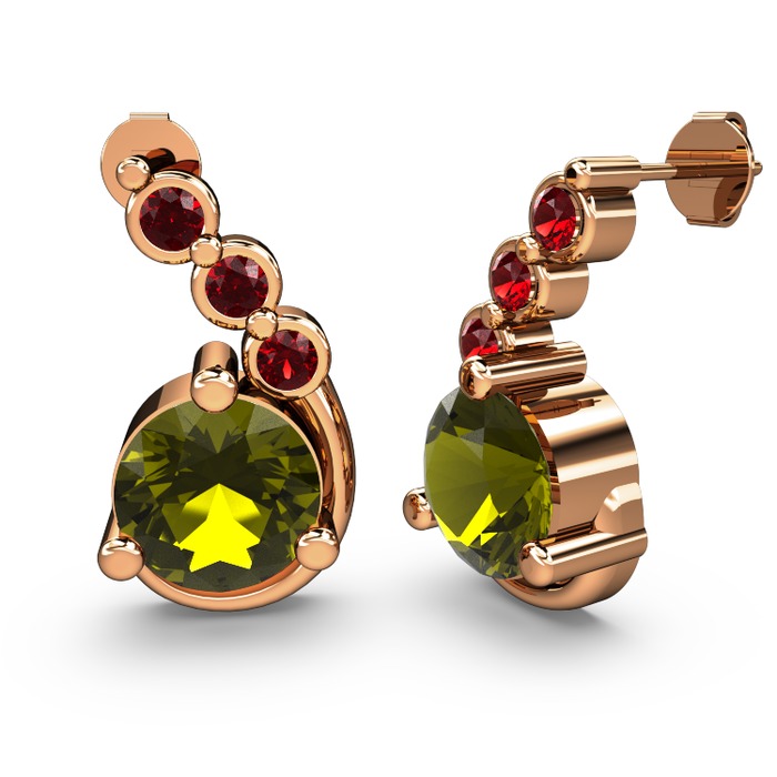 Peridot ve garnet 18 ayar rose altın küpe