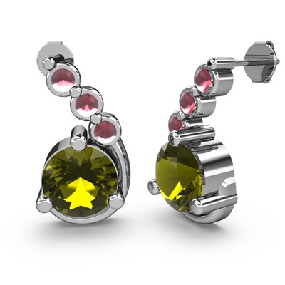 Peridot ve kök yakut 14 ayar beyaz altın küpe