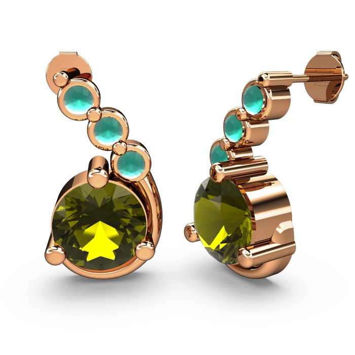 Peridot ve kök zümrüt 18 ayar rose altın küpe