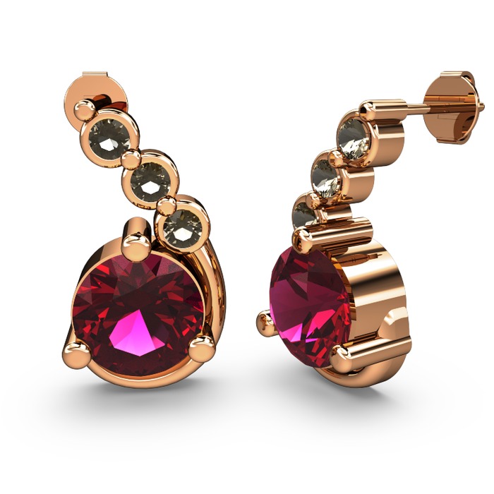 Rodolit garnet ve dumanlı kuvars 14 ayar rose altın küpe