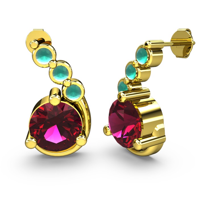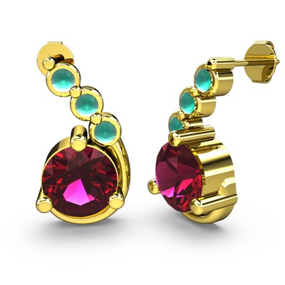 Rodolit garnet ve kök zümrüt 925 ayar altın kaplama gümüş küpe