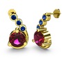 Rodolit garnet ve lab safir 14 ayar altın küpe
