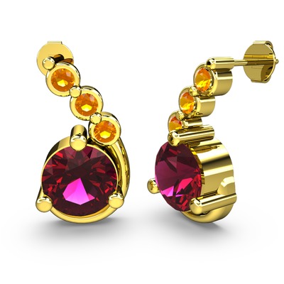 Rodolit garnet ve sitrin 8 ayar altın küpe
