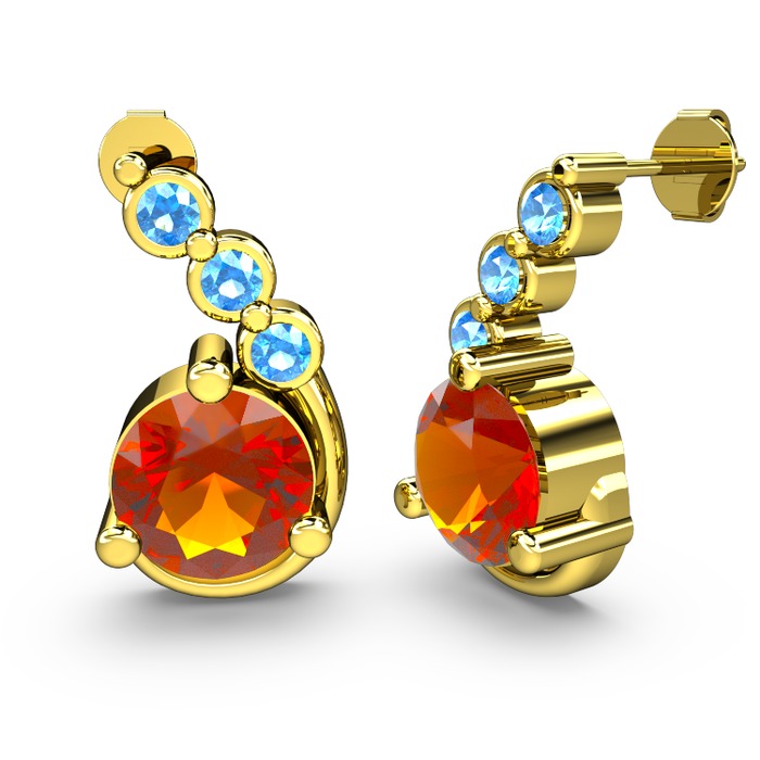 Sitrin ve akuamarin 14 ayar altın küpe