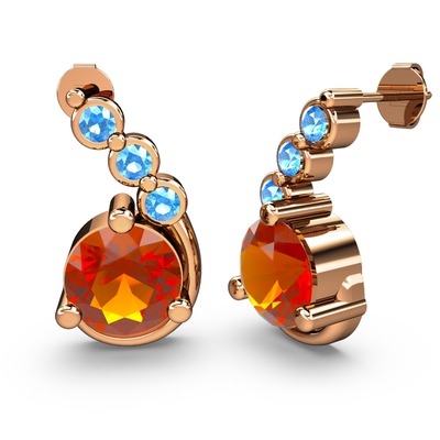 Sitrin ve akuamarin 8 ayar rose altın küpe