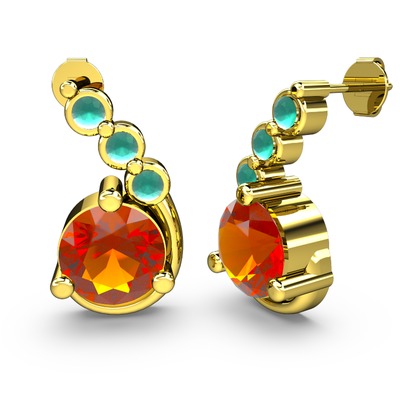 Sitrin ve kök zümrüt 18 ayar altın küpe