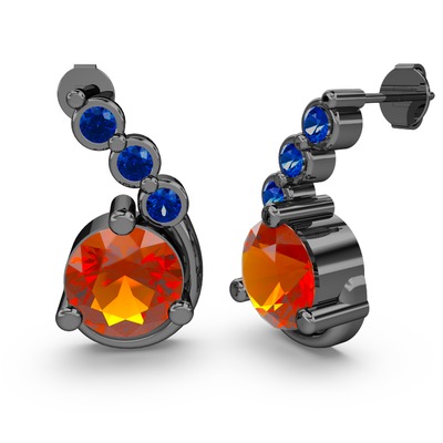 Sitrin ve lab safir 925 ayar siyah rodyum kaplama gümüş küpe