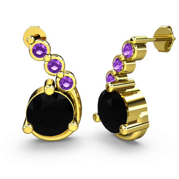 Siyah zirkon ve ametist 925 ayar altın kaplama gümüş küpe