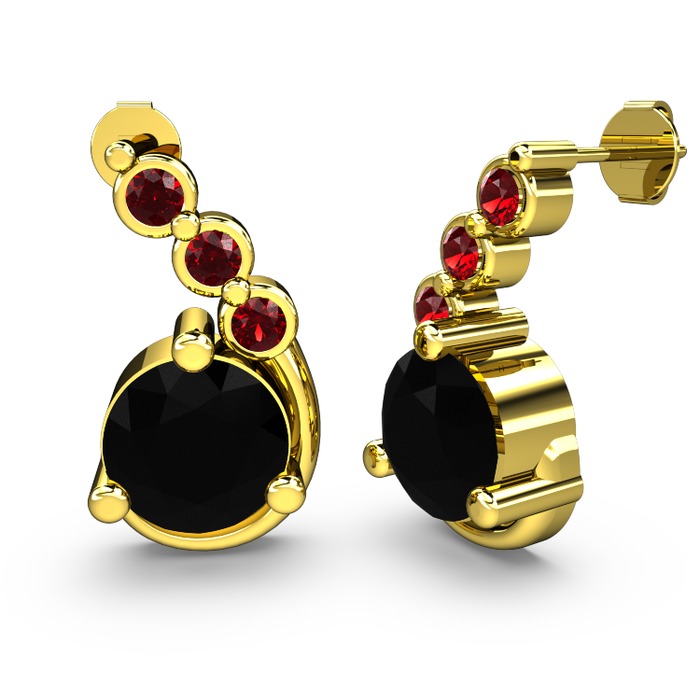 Siyah zirkon ve garnet 925 ayar altın kaplama gümüş küpe