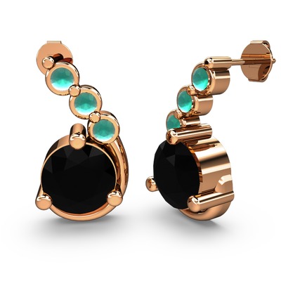 Siyah zirkon ve kök zümrüt 18 ayar rose altın küpe