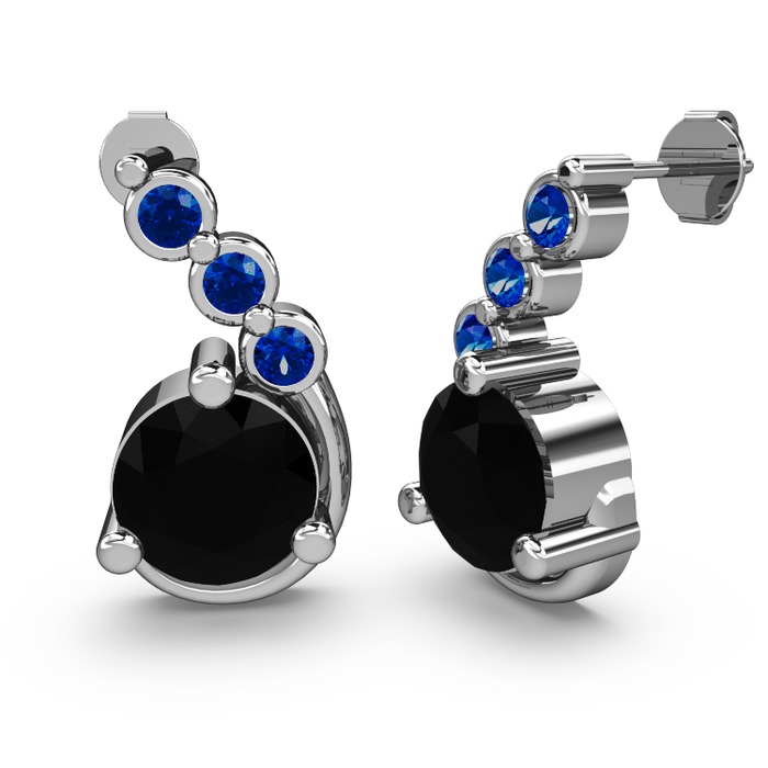 Siyah zirkon ve lab safir 18 ayar beyaz altın küpe
