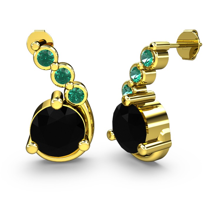 Siyah zirkon ve yeşil kuvars 14 ayar altın küpe
