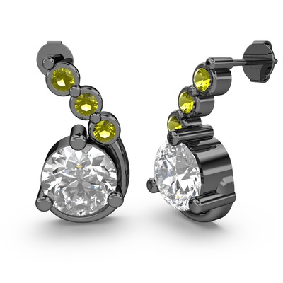 Swarovski ve peridot 925 ayar siyah rodyum kaplama gümüş küpe
