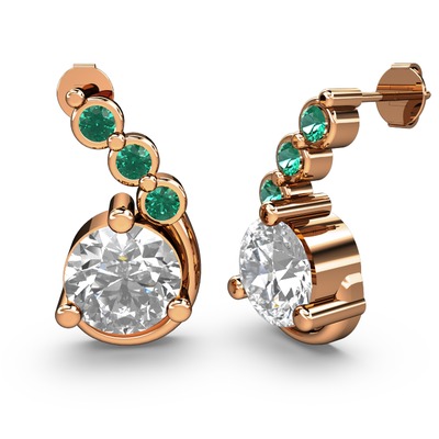 Swarovski ve yeşil kuvars 14 ayar rose altın küpe