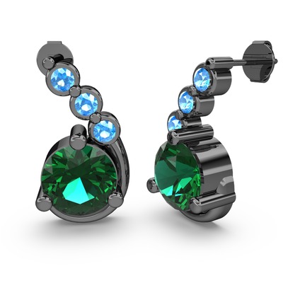 Yeşil kuvars ve akuamarin 925 ayar siyah rodyum kaplama gümüş küpe