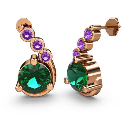 Yeşil kuvars ve ametist 8 ayar rose altın küpe