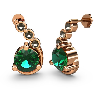 Yeşil kuvars ve dumanlı kuvars 14 ayar rose altın küpe