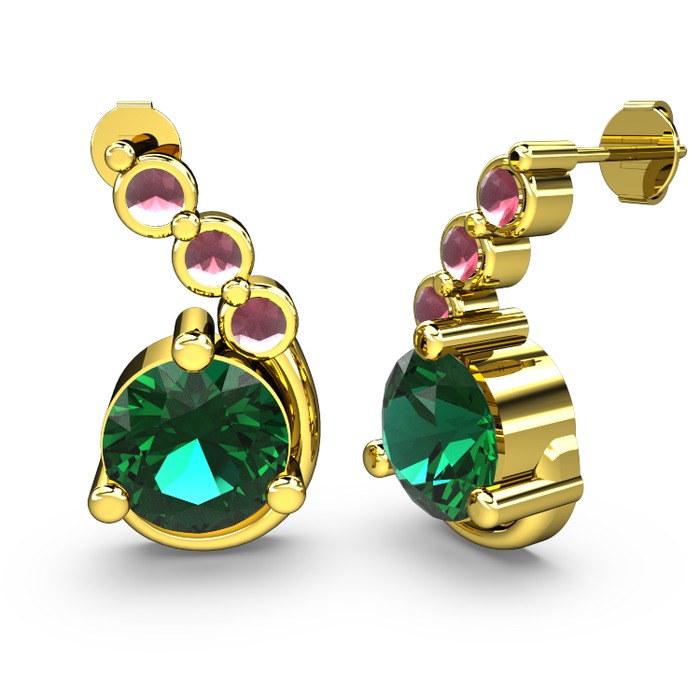 Yeşil kuvars ve kök yakut 8 ayar altın küpe