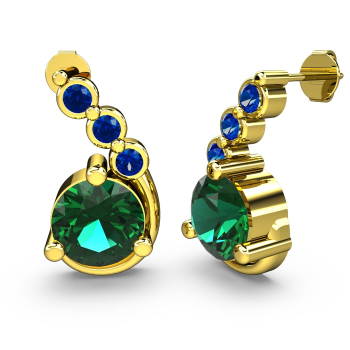 Yeşil kuvars ve lab safir 8 ayar altın küpe