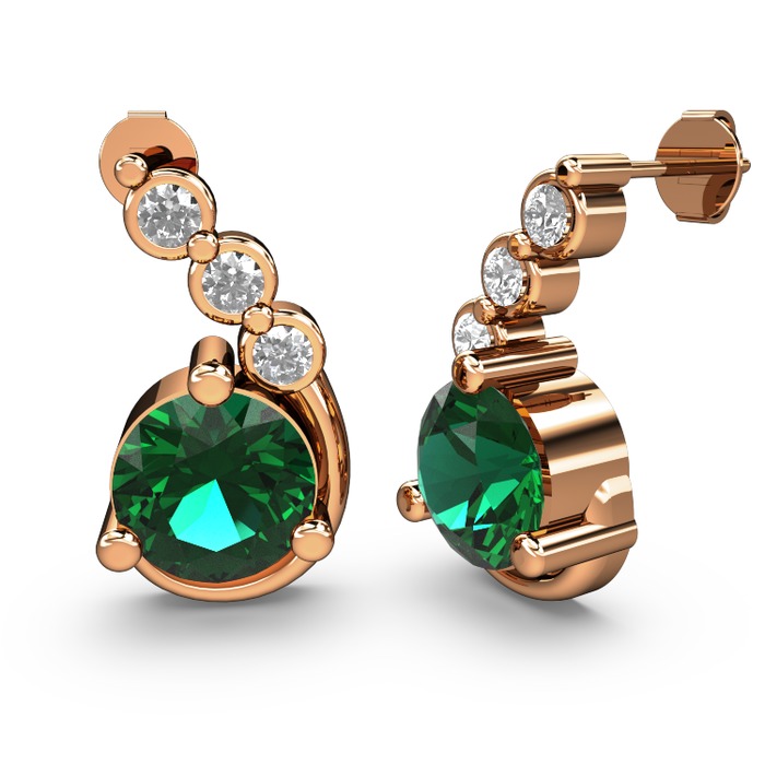Yeşil kuvars ve pırlanta 14 ayar rose altın küpe (0.108 karat)