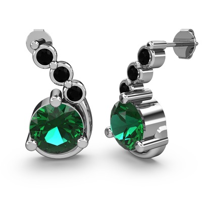 Yeşil kuvars ve siyah zirkon 8 ayar beyaz altın küpe