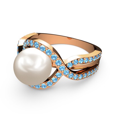 Inci ve akuamarin 18 ayar rose altın yüzük