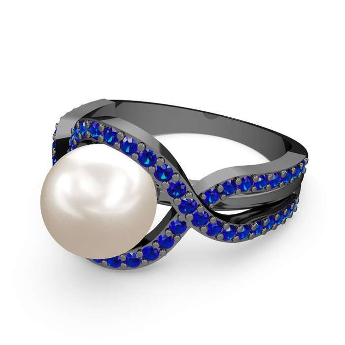 Inci ve lab safir 925 ayar siyah rodyum kaplama gümüş yüzük