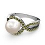 Inci ve peridot 18 ayar beyaz altın yüzük