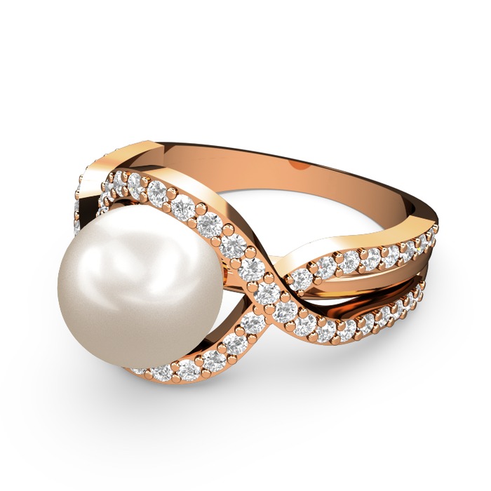 Inci ve pırlanta 14 ayar rose altın yüzük (0.616 karat)