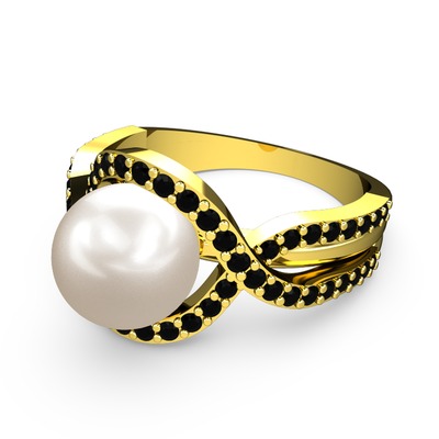 Inci ve siyah zirkon 14 ayar altın yüzük