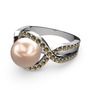 Pembe inci ve dumanlı kuvars 14 ayar beyaz altın yüzük