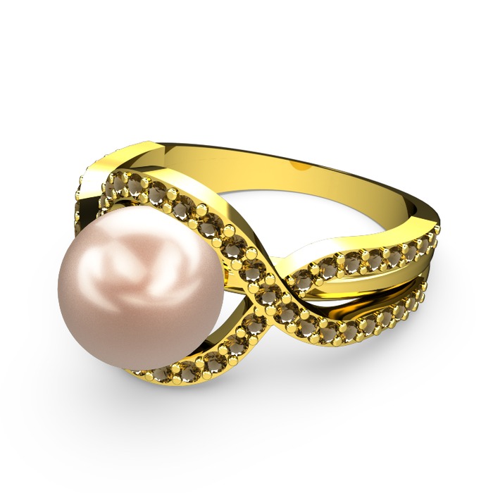 Pembe inci ve dumanlı kuvars 925 ayar altın kaplama gümüş yüzük