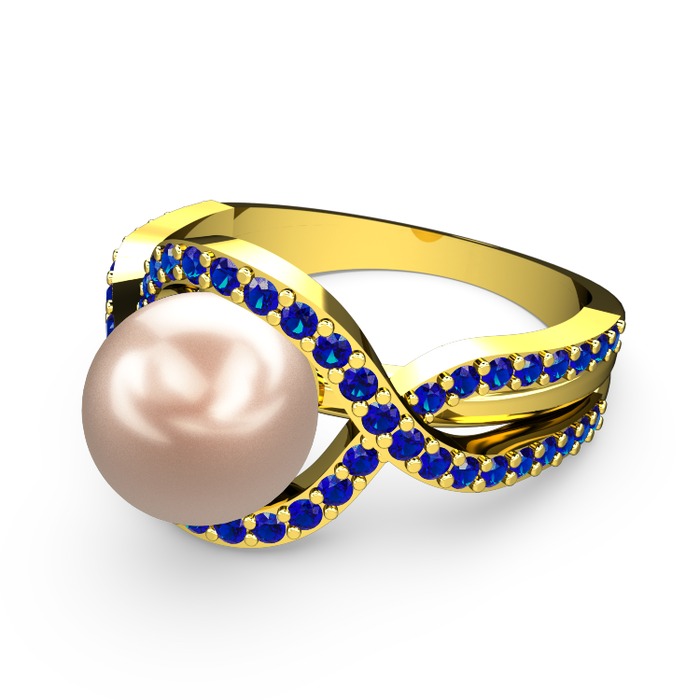 Pembe inci ve lab safir 18 ayar altın yüzük