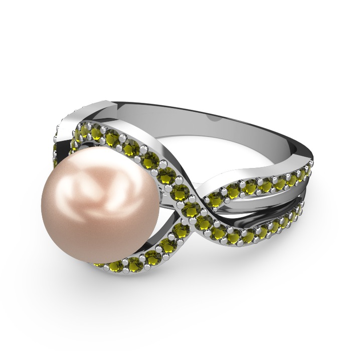 Pembe inci ve peridot 8 ayar beyaz altın yüzük