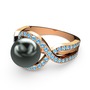 Siyah inci ve akuamarin 14 ayar rose altın yüzük