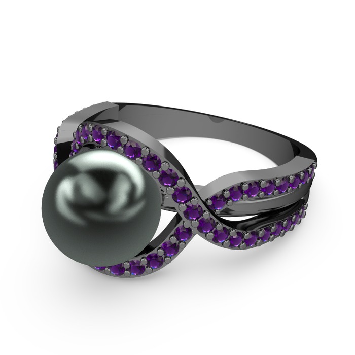 Siyah inci ve ametist 925 ayar siyah rodyum kaplama gümüş yüzük