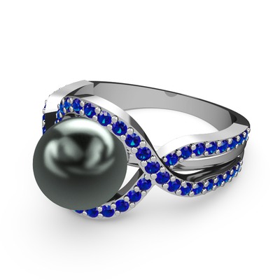Siyah inci ve lab safir 8 ayar beyaz altın yüzük