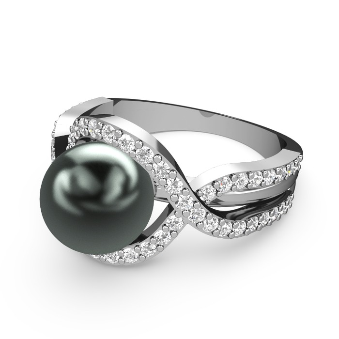 Siyah inci ve pırlanta 14 ayar beyaz altın yüzük (0.616 karat)