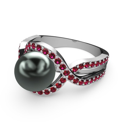 Siyah inci ve rodolit garnet 8 ayar beyaz altın yüzük