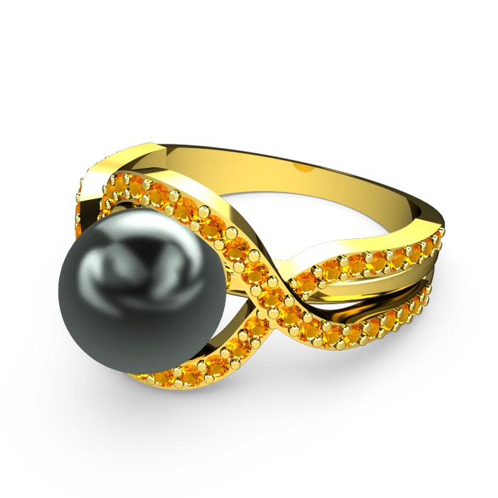 Siyah inci ve sitrin 18 ayar altın yüzük