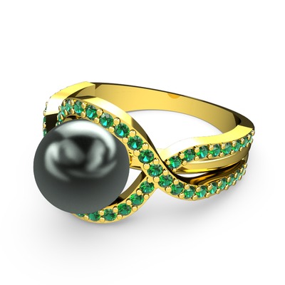 Siyah inci ve yeşil kuvars 8 ayar altın yüzük