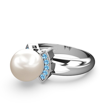 Inci ve akuamarin 18 ayar beyaz altın yüzük
