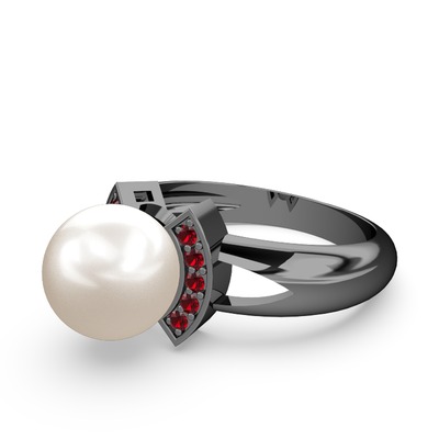 Inci ve garnet 925 ayar siyah rodyum kaplama gümüş yüzük