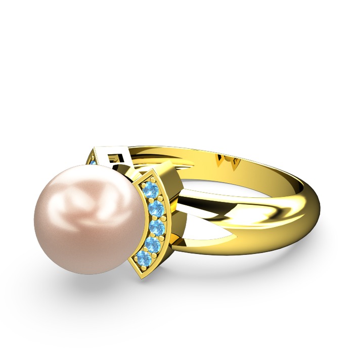 Pembe inci ve akuamarin 14 ayar altın yüzük